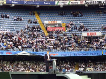 Eduardo Zaplana, durante el mitin celebrado en Mestalla