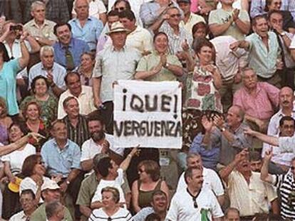 El público de ayer en Las Ventas mostró con carteles su descontento