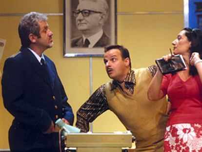 José Ramón Soroiz, Ramón Ibarra (centro) y Ane Gabarain, en 'Muerte accidental de un anarquista'