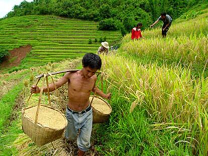 Un agricultor chino de arroz