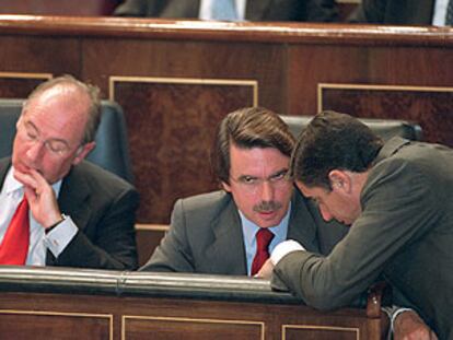 Eduardo Zaplana conversa en el Congreso con José María Aznar