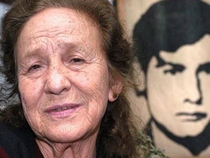 La activista Rosario Ibarra, ante la foto de su hijo Jesús Piedra, desaparecido en México