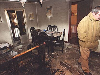Estado del salón de Estanis Amutxastegi tras un ataque a su domicilio