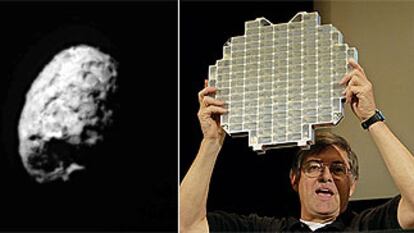El núcleo del cometa <b>Wild 2,</b> y Don Brownlee con un recolector de partículas