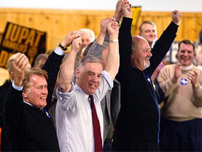 Howard Dean, entre el actor Martin Sheen y el director Rob Reiner