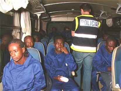 Africanos hallados en el buque <i>Conakry,</i> en un autobús