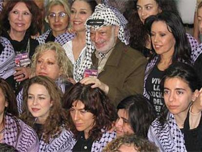 Yasir Arafat, rodeado de artistas y escritoras españolas