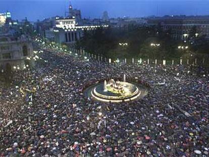 Cibeles colapsado por madrileños que protestan contra el terror