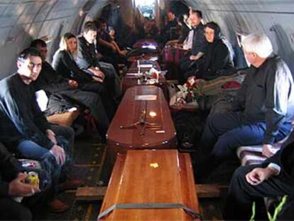 Familias y feretros de víctimas ruamanas del 11-M en el vuelo a Bucarest