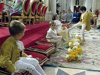 El hijo de la infanta Elena trató de propinar una patada a una niña durante la ceremonia