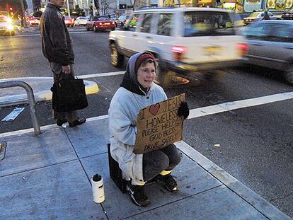 Una mujer pide ayuda en una calle