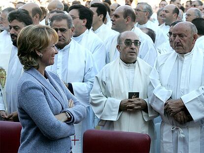 Esperanza Aguirre, durante una misa en la plaza Mayor