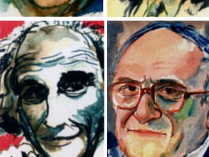 José Manuel Lara, José Saramago, Leo Ferré y Vicente Aranda