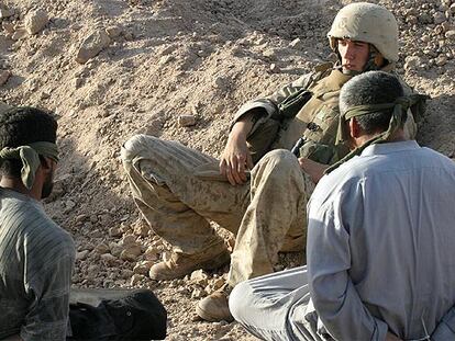 <i>Marine</i> estadounidense vigila a dos presos iraquíes