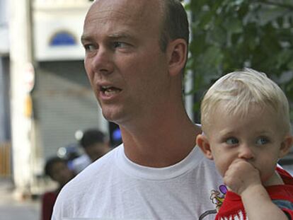 El sueco Michael Bergman, con su hijo de un año Hannes en sus brazos, busca a su esposa, Cecilia, desaparecida