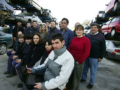 Efrén Núñez y los empleados de Desguaces Valdizarbe