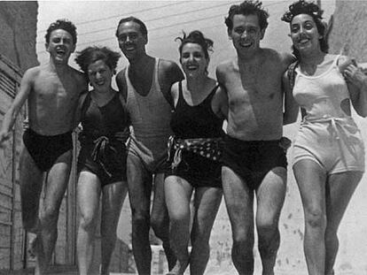 Luis Cernuda, con unos amigos, en 1937.