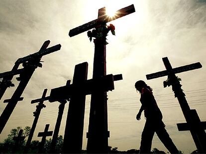 Cruces en memoria de las mujeres asesinadas en Ciudad Juárez