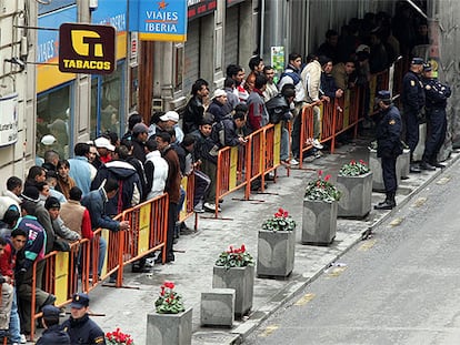 Un grupo de inmigrantes hace cola en el consulado marroquí