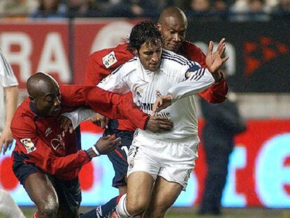 Raúl, entre Webó y Morales, en una jugada del Osasuna-Madrid