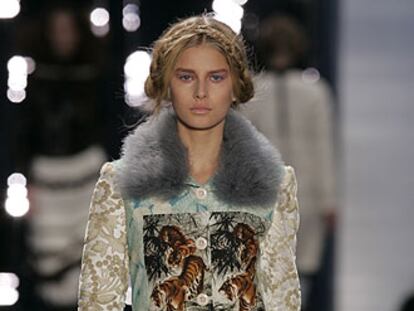 Abrigo en <i>collage</i> de brocados y piel de Custo Barcelona