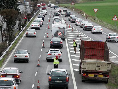 Colas en los puntos conflictivos durante el retorno