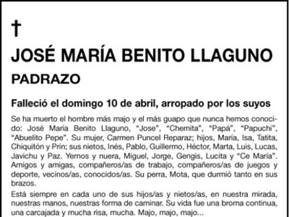 La familia de José María Benito Llaguno le despide con una emocionante esquela publicada en EL PAÍS