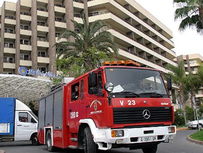 Un camión de bomberos delante del hotel Meliá de Alicante