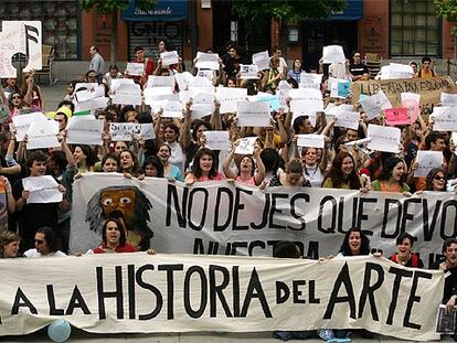 Concentración de alumnos y docentes en apoyo de la carrera de Historia del Arte