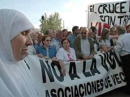 Vecinos de Villaverde, durante la manifestación por la convivencia
