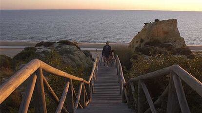 Una pasarela de madera da acceso a la playa desde el parador de Mazagón, Moguer