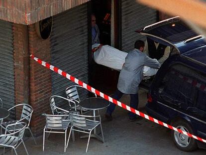 Empleados de servicios funerarios introducen en un furgón el cuerpo del concejal socialista de Orio Juan Priede
