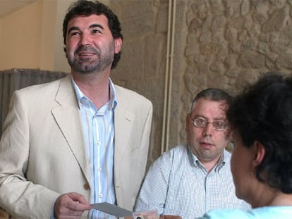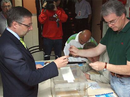 Anxo Quintana, en el momento de depositar su papeleta en Allariz, Ourense