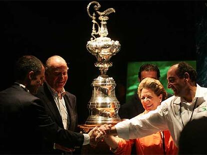 El Rey, el presidente Francisco Camps, la alcaldesa Rita Barberá e Ignacio Galán, con la jarra de las Cien Guineas