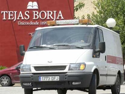 Un furgón fúnebre lleva a dos obreros fallecidos en Llíria
