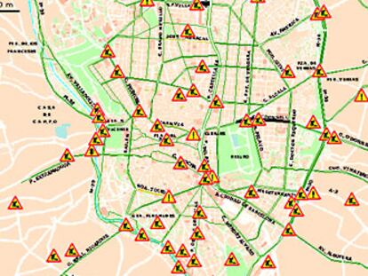 El mapa de incidencias elaborado por el Ayuntamiento se llena de triángulos de advertencia