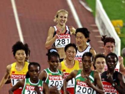 Las tres atletas etíopes en cabeza y Radciffe al fondo
