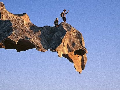 Un par de turistas divisan el horizonte desde el cabo d'Orso