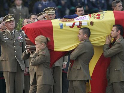 El Rey, el Príncipe y Zapatero reciben en Getafe los féretros de los 17 militares muertos