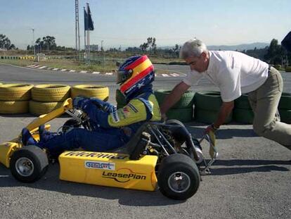 El padre de Alonso, José Luis, empuja el <i>kart</i>