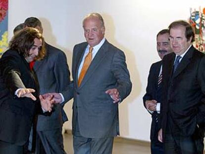 Javier Panera muestra al rey Juan Carlos la pieza de Javier Pérez 'Mutaciones IV'