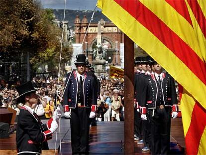 Mossos d'Esquadra, ante la bandera catalana durante la 'Diada'