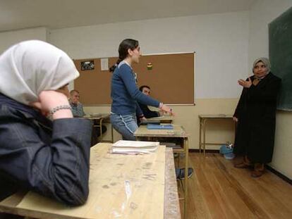 Un grupo de niños atiende las explicaciones de su profesora