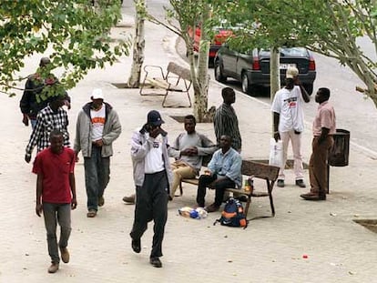 Inmigrantes subsaharianos en el parque de la calle Pablo Iglesias de Madrid