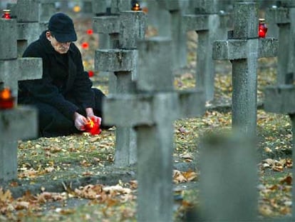 Un polaco enciende una vela en el cementerio de Varsovia, el pasado 1 de noviembre