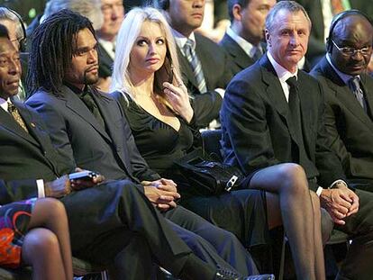 Pele, Karembeu, con su mujer, Adriana; Johan Cruyff y Roger Milla durante el sorteo del Mundial.