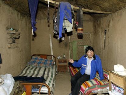 El candidato presidencial Evo Morales, en su vivienda de Orinoca