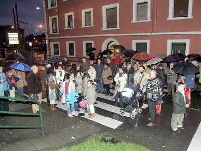 Vecinos del barrio de Basurto concentrados en el paso de cebra donde ocurrió el atropello mortal