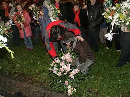 Los padres de los dos niños atropellados el martes en Basurto, depostian flores