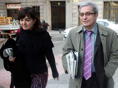 Joan Saura, líder de ICV, se dirige con su jefa de prensa a la reunión con Fernández de la Vega